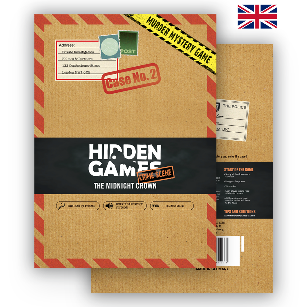 The famous Midnight Crown has been stolen from a museum in Wakefield. A construct of intrigue and secrets is knitted around a supposedly simple burglary. It is not a prerequisite that you have already played the first crime case. Begebt euch im Team auf eine spannende Jagd nach den Tätern- Unser zweiter Fall im britischen Englisch